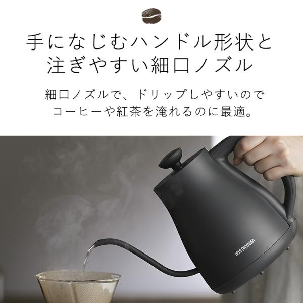 電気ケトル 0.8L ケトル 電気 電気ポット 湯沸かし 温度調節 保温 内側 ステンレス おしゃれ 細口 湯漏れ防止 空焚き防止 アイリスオーヤマ IKE-C800T *