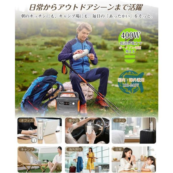 電気ケトル ポータブル 真空断熱構造 保温保冷 316ステンレス トラベルケトル 500ml容量 100-240V対応 温度調節 持ち運びケトル 400W 小型 一人暮らし