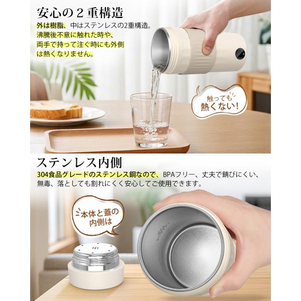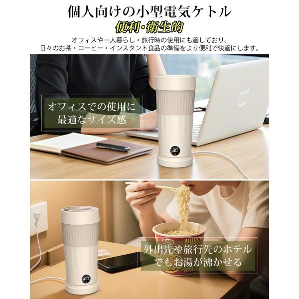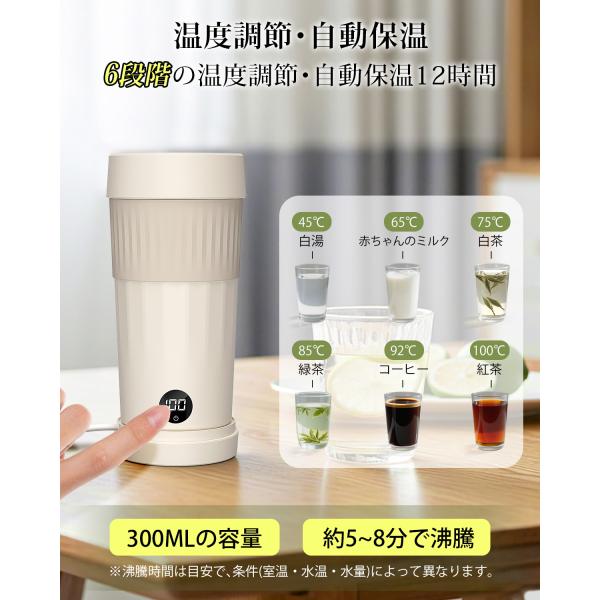 電気ケトル ポータブル 収納できる 携帯 湯沸かしケトル 小型 6段階温度調節 1-12H保温 300ml トラベルケトル ステンレス 二重構造 旅行 一人用 ギフト