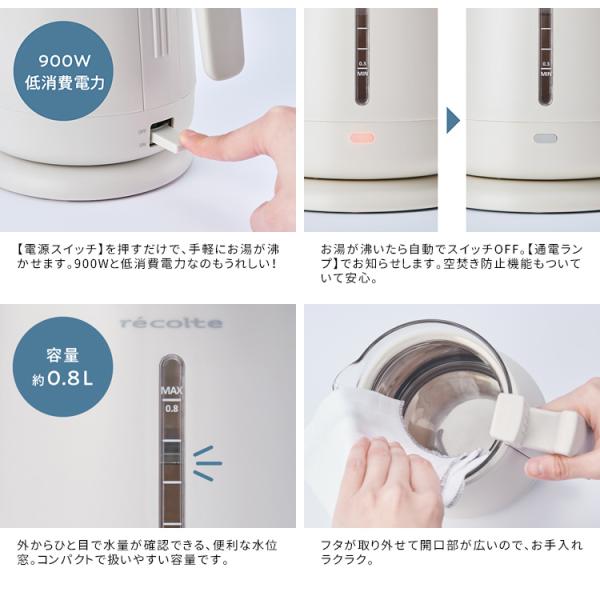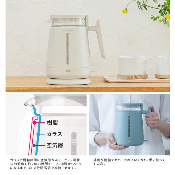 recolte ダブルウォール ガラスケトル 800ml (電気ケトル 電気ポット レコルト ガラス製 0.8L 空焚き防止 おしゃれ 北欧風 保温 レコルテ)