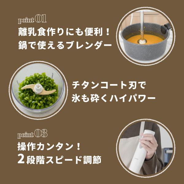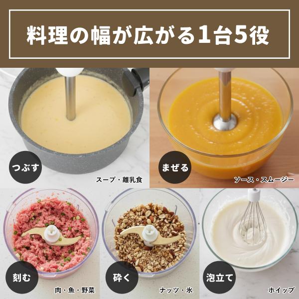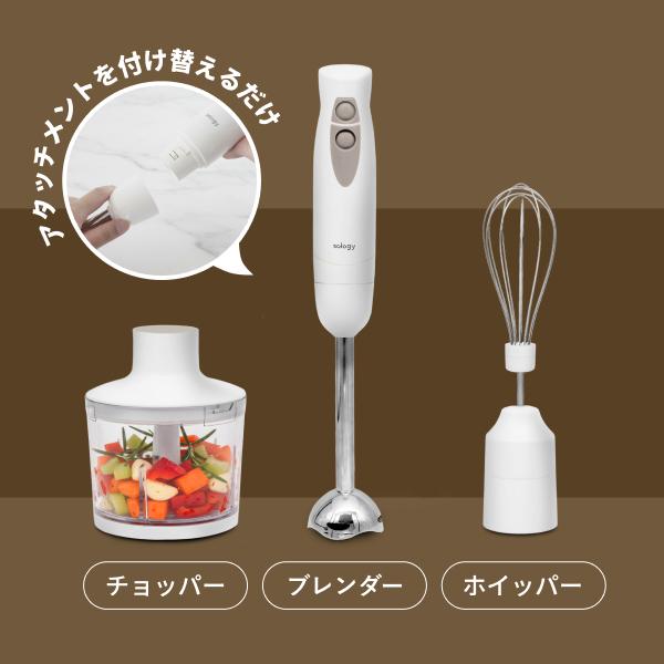 ハンドブレンダーセット 氷も砕ける チタンコート フードプロセッサー ホイッパー ミキサー 電動 みじん切り チョッパー 離乳食 氷 ホワイト BNS5602WH sology