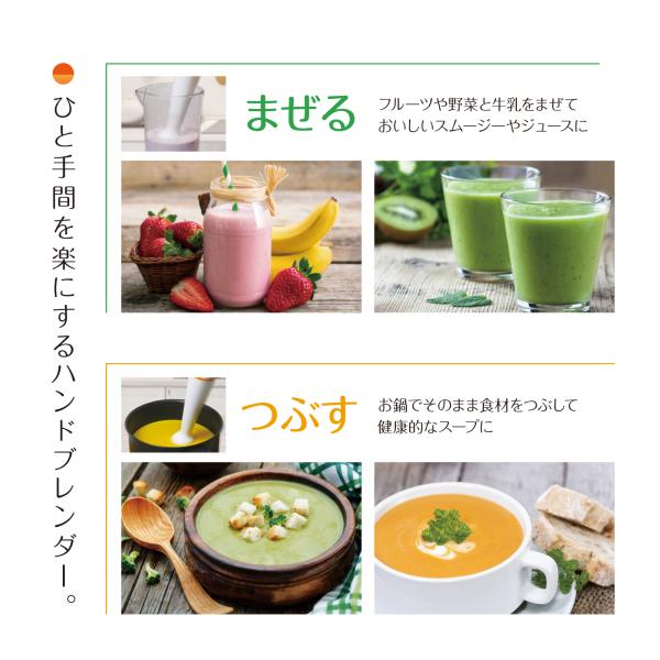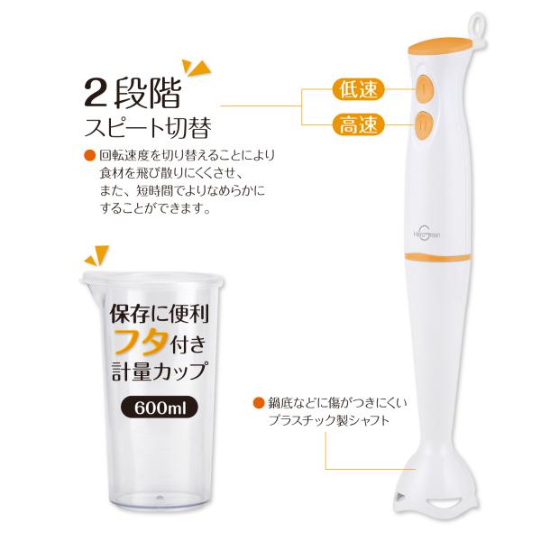 ハンドブレンダー ヒーローグリーン HBL-20 つぶす まぜる フタつき 計量カップ 2段階スピード スープ ドレッシング スティックミキサー 離乳食 時短