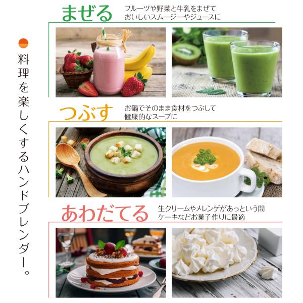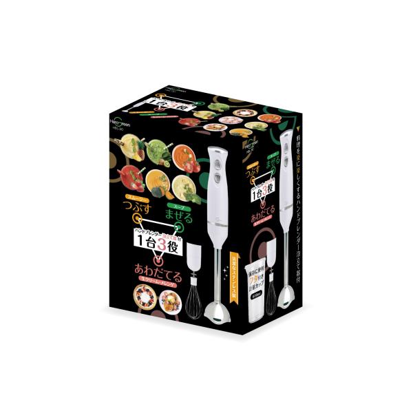 ハンドブレンダー ヒーローグリーン HBL-30 つぶす まぜる あわだてるステンレス 清潔 フタつき 計量カップ 2段階スピード スムージー スープ 離乳食 調理 時短