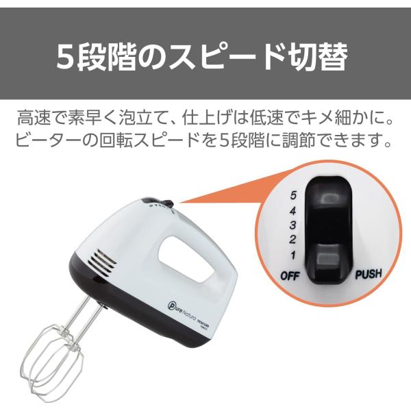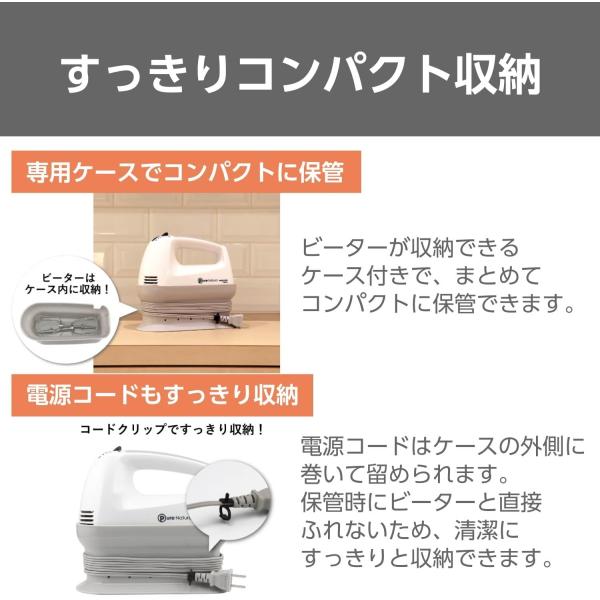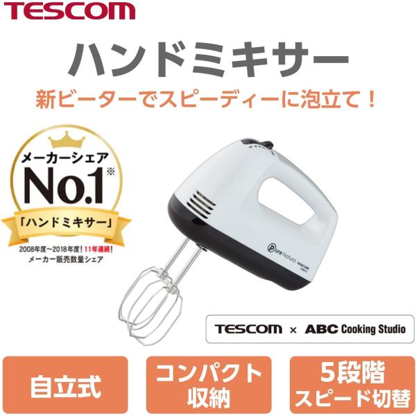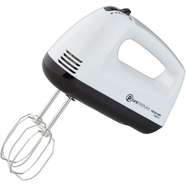 テスコム ハンドミキサー 泡立て器 立てて置ける自立式 5段階切替 取り外しワンタッチ ビーター 収納付き コードクリップ付き ホワイト THM273 W
