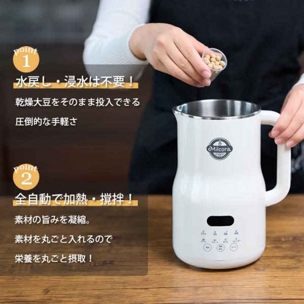 Milcora 豆乳メーカー (ミルコラ 全自動 豆乳メーカー スープメーカー 乾燥大豆対応 水戻し不要 多機能 ) 特典付