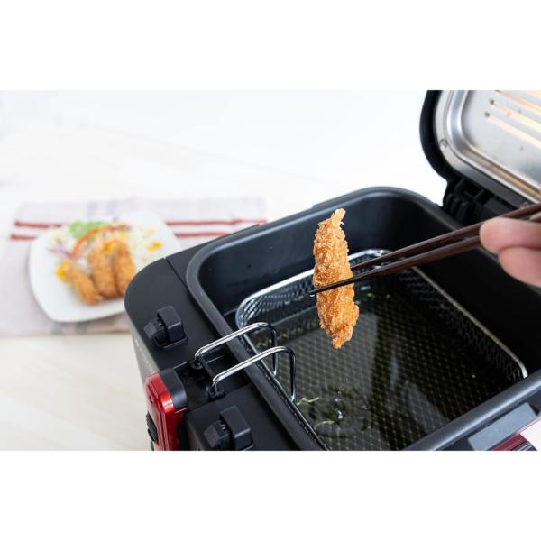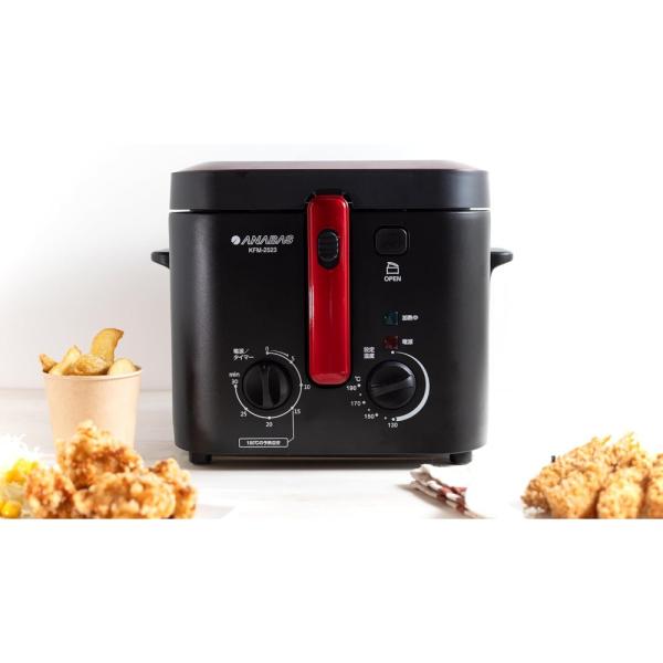 電気フライヤー おウチで揚げもの屋さん 太知 ANABAS アナバス 油はねなし 30分タイマー 温度調節 油量2.5L バスケット付き ブラック/レッド KFM-2523 ◆宅