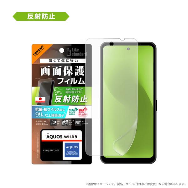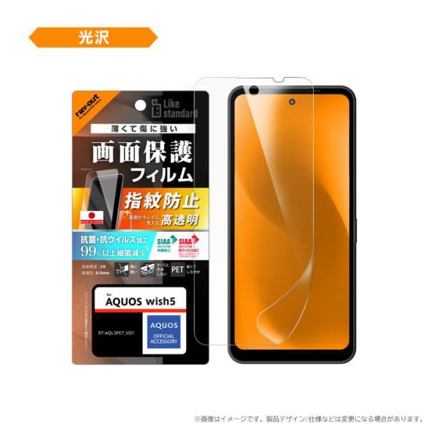 抗菌 AQUOS wish5 SH-52F フィルム 抗ウイルス アクオスウィッシュ5 保護フィルム 指紋防止 光沢 液晶保護 画面保護 PETフィルム 平面 保護シート