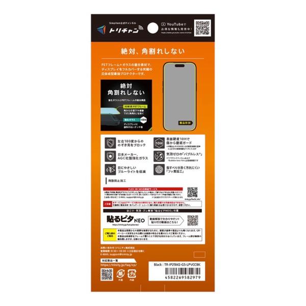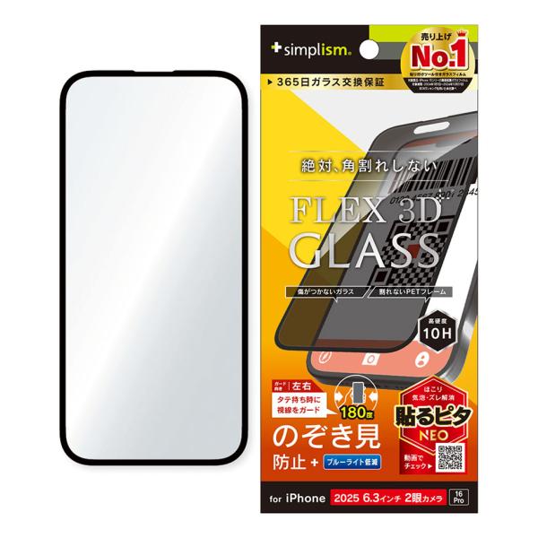 Simplism シンプリズム iPhone 17 / 16 Pro FLEX 3D のぞき見防止 複合フレームガラス ブラック TR-IP25M2-G3-LPVCCBK