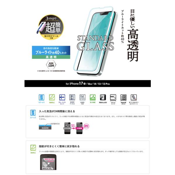 エレコム ELECOM iPhone 17e / 16e / 14 / 13 / 13 Pro ガラスフィルム ブルーライトカット 超簡単貼り付けツール PM-A26SFLGGTBL