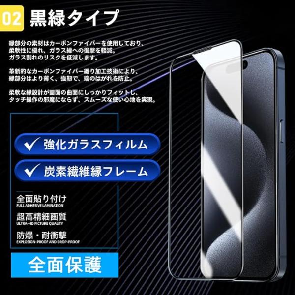Phone 15/16 用 ガラスフィルム 2枚セット 自動吸着 貼りやすい フィルム 指紋防止 飛散防止 保護フィルム スクラッチ防止 (iPhone 15/16 (6.1 インチ)Ultra HD