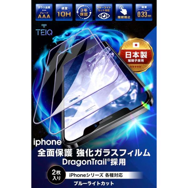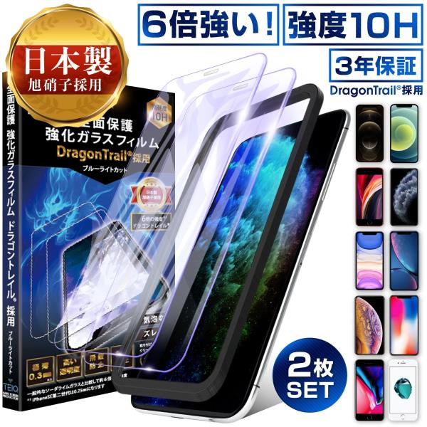 iPhone ドラゴントレイル ガラスフィルム ブルーライトカット 全面 iPhone12 pro Max mini iPhone SE3 SE2 iPhone11 8 7 XR XS X 10H ガラス 保護フィルム 2枚