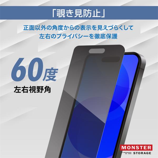 MonsterStorage iPhone16 ガラスフィルム iPhone16 6.1インチ専用 ブルーライトカット 覗き見防止 アイフォン 液晶保護フィルム 単独パッケージ 2個セット