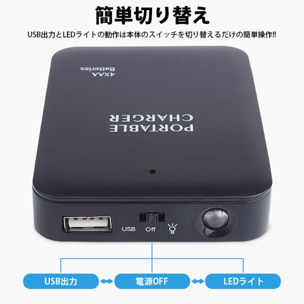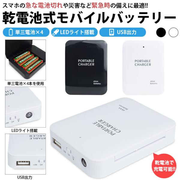 モバイルバッテリー 乾電池式 LEDライト 単3形電池 USB出力 防災グッズ 非常用 スマートフォン スマホ Android iPhone 持ち運び