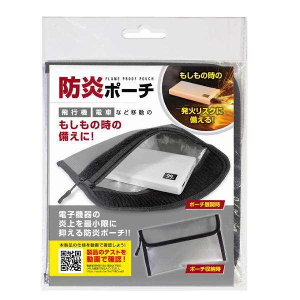 防災士監修 防炎ポーチ モバイルバッテリーの爆発を軽減 飛行機 電車 発火リスク対策 メール便対応
