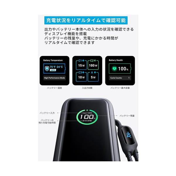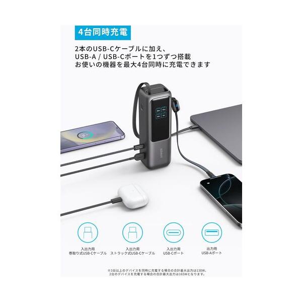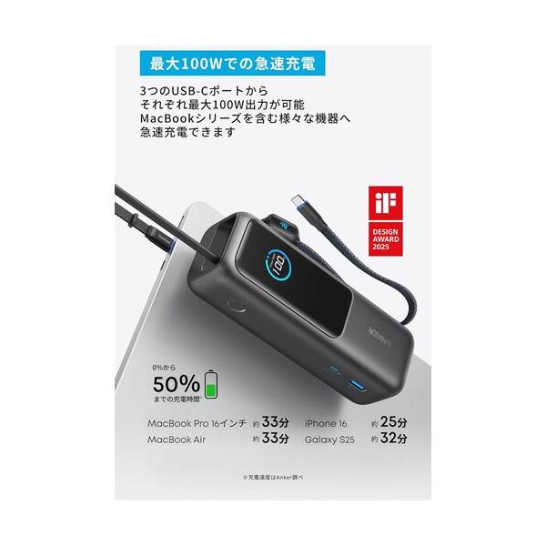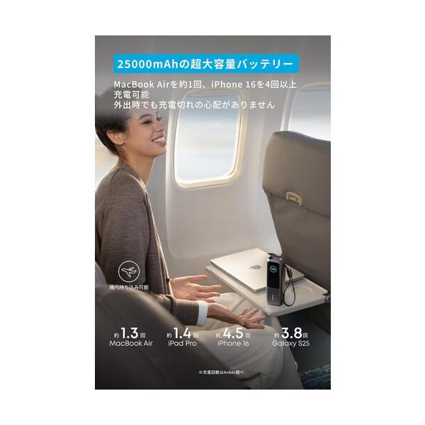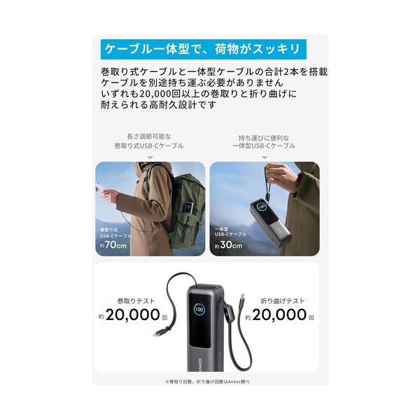 Anker Power Bank 正規販売品 モバイルバッテリー(25000mAh,Built-in&巻取り式USB-C ケーブル) ブラック A1695N11