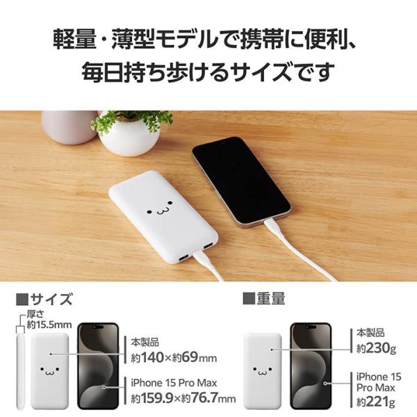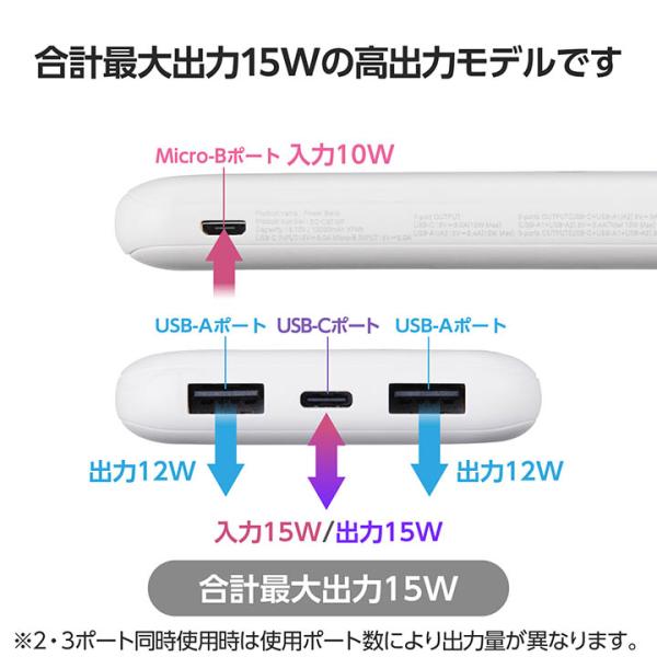 エレコム モバイルバッテリー 5V/3A出力 10000mAh Type-Cx1 USB-Ax2 microBx1 15W リチウムイオン電池 タイプC しろちゃん EC-C37WF