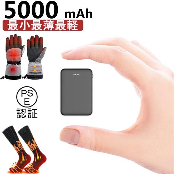 モバイルバッテリー 5000mAh 小型 軽量 電池 5V/2.4A安定出力 DC/USB出力 電熱グローブ 電気靴下 給電 電熱ベスト iPhone など各種対応