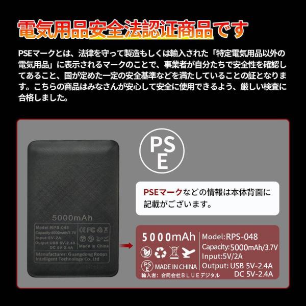 モバイルバッテリー 5000mAh【DC/USB出力 電熱専用】小型 軽量 電池 5V/2.4A安定出力 電熱グローブ 電熱ベスト 電気毛布 給電 iPhone など各種対応