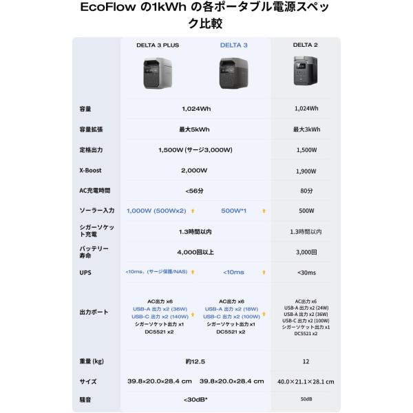 EcoFlow DELTA3 ポータブル電源 1024Wh リン酸鉄リチウムイオン
