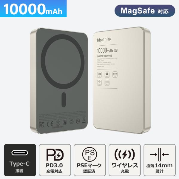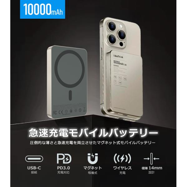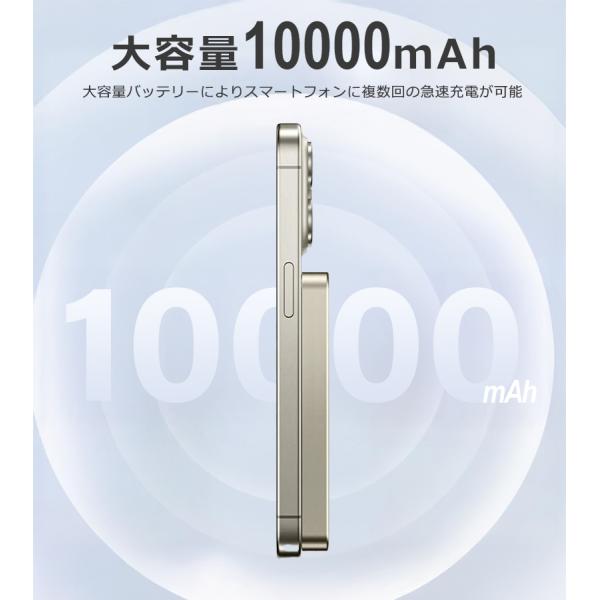 爆買モバイルバッテリー 10000mAh 大容量 小型 軽量 マグネット式 USB-C 急速充電 LED残量表示 ワイヤレス スマホ iPhone Android 全機種対応 PSE認証 旅行 出張