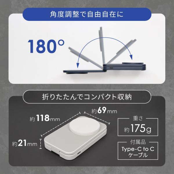 モバイルバッテリー magsafe ワイヤレス マグネット式 5000mAh PD20W対応 スタンド 折りたたみ PSE 認証 取得済み