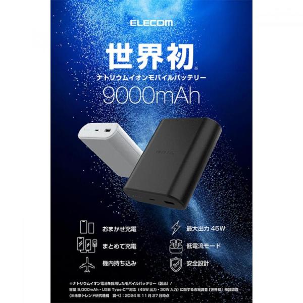 (即納在庫有) DE-C55L-9000 エレコム ナトリウムイオン電池モバイルバッテリー 9000mAh スマホ タブレット パソコン 充電 ブラック (/DE-C55L-9000/)