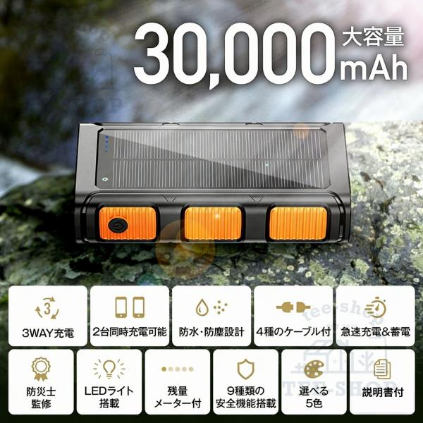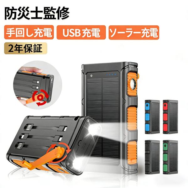 【防災士監修】モバイルバッテリー ソーラー 3way蓄電 LEDライト付き 手回し USB充電 PD対応 30000mah 防水 携帯充電器 2台同時 アウトドア用品 防災グッズ 地震