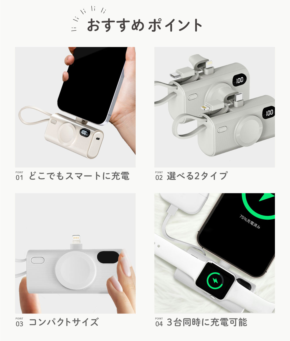 アップルウォッチ対応充電器 モバイルバッテリー 軽量 小型 大容量 AppleWatch対応 充電器 アップルウォッチ対応充電器 iPhone 5000mAh ワイヤレス充電器