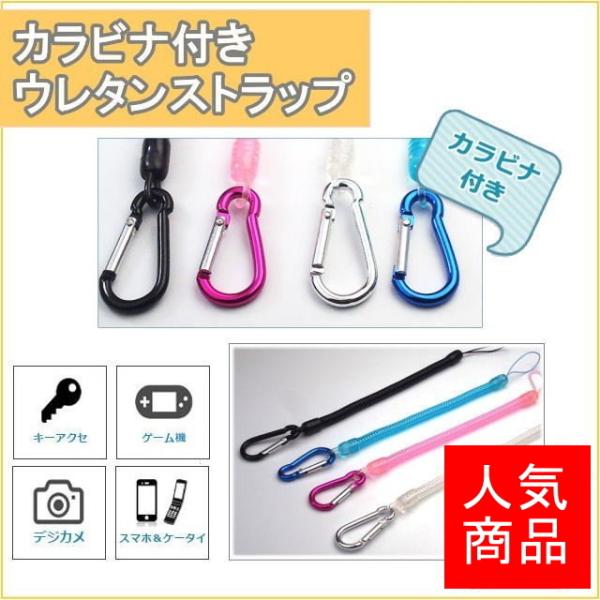 カラビナ付きウレタンストラップ ストラップ スマホ スマートフォン 携帯 デジカメ カギ キーアクセ カラビナ 落下防止 コイル