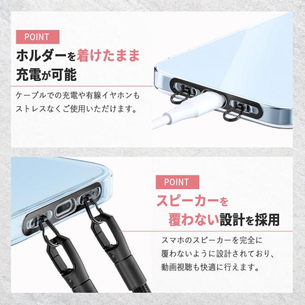 スマホショルダーストラップ ストラップホルダー 2口 2点吊り スマホ 紐 首掛け Phone 16 15 14 13 12 丈夫 頑丈 ホルダー おしゃれ