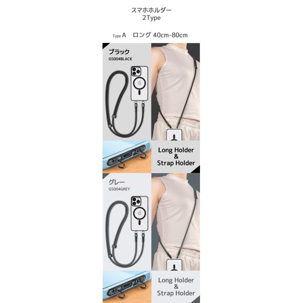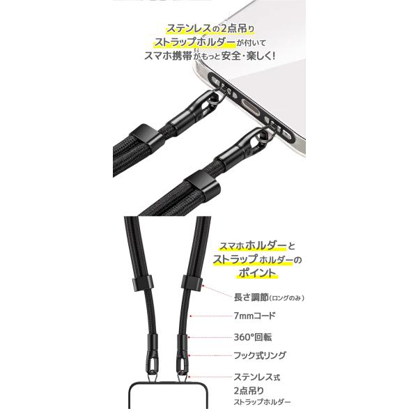 2点吊り ハンドストラップ スマホストラップ ステンレス製ストラップ付き ロング ショート 2Type スマホストラップ レディース 挟むだけ ストラップホルダー