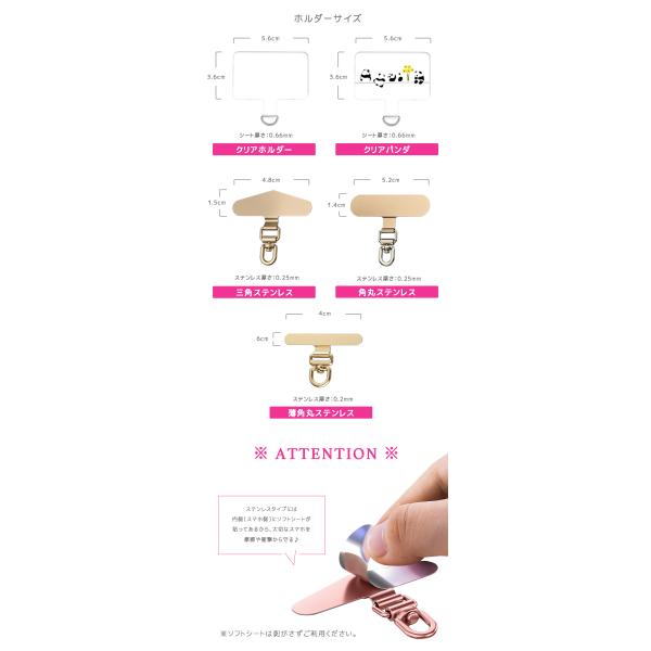 ストラップホルダー ホルダーのみ ステンレス 全10種類 スマホ用 挟むだけ クリアホルダー スマホ ホルダー 単品 別売り 肩掛け スマホストラップ