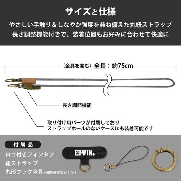 EDWIN エドウイン スマホショルダー ストラップ 75cm ロングストラップ スマホ iphone 首掛け 肩掛け 斜め掛け ナノユニバース ブランド おしゃれ edwin