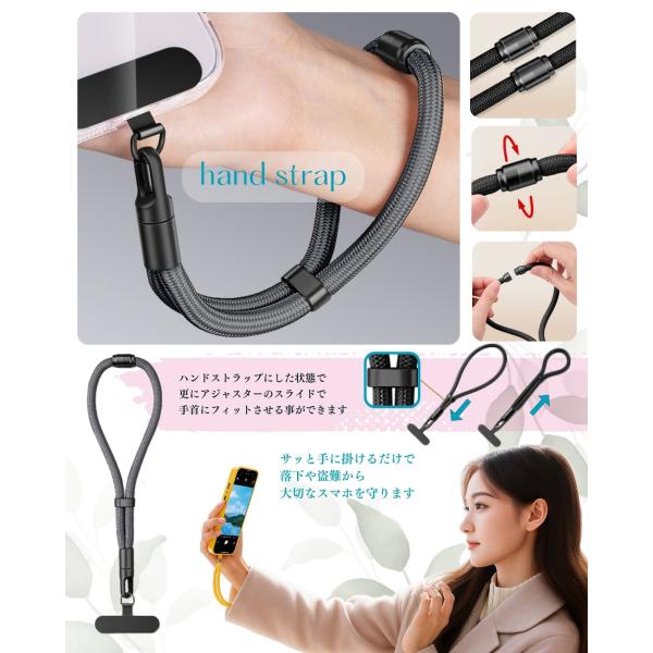 3WAY スマホストラップ 1本3役 手首/首掛け/斜め掛け ショルダーストラップ ネックストラップ ハンドストラップ 肩掛け 手首ひも 携帯ストラップ 落下防止