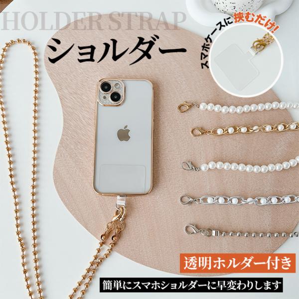 スマホショルダー 太め チェーン スマホショルダーストラップ ネック 携帯ストラップ 肩掛け 首掛け 携帯ストラップホルダー パール