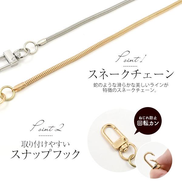スネークチェーン ショルダーストラップ (120cm) iPhone スマホ 携帯 カメラ 肩掛けストラップ フック式 鉄製 チェーン 紐 シルバー ゴールド