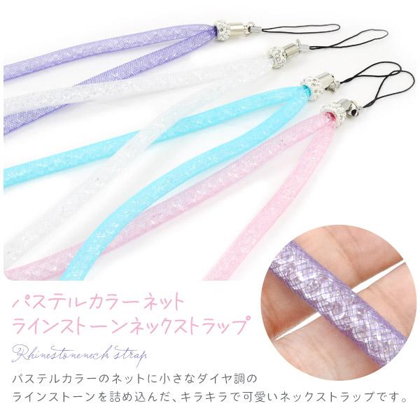 ラインストーンネックストラップ パステルカラーネット (長さ48cm 太さ6.8mm) スマホケース カメラ 財布 ホルダー 紐