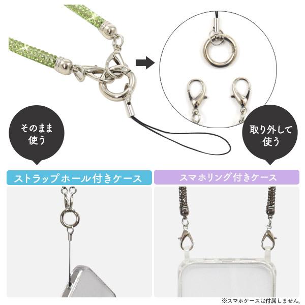 きらきら ショルダーストラップ 全長135cm ラインストーン スマホチェーン iPhone スマホ 携帯 カメラ 肩掛けストラップ チェーン 紐 シルバー ゴールド