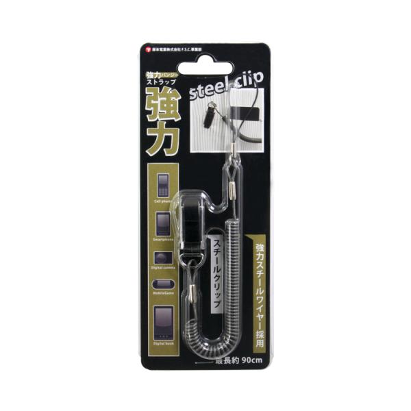 携帯ストラップ 強力バンジーストラップ クリップタイプ MODM-W-BK ブラック 落下防止/盗難防止/紛失防止/スマートフォン/カギ/定期入れ 送料無料 藤本電業