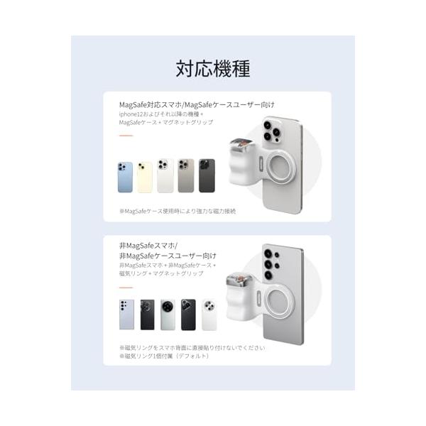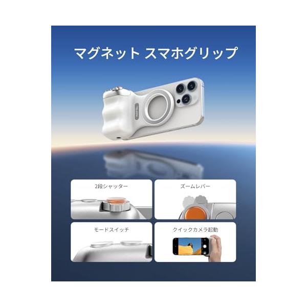 TELESIN マグネットスマホグリップ 自撮りグリップ Bluetoothリモコン付き 2段シャッター ズーム機能 人間工学グリップ 片手操作