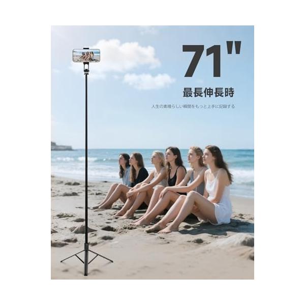 RISEOFLE スマホ三脚&自撮り棒 180cm 収納一体型 スマホスタンド 三脚 iPhone/Android対応 長い セルカ棒 ワイヤレ