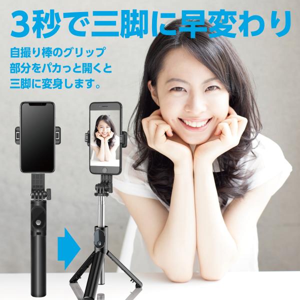 自撮り棒 iphone スマホ 三脚 セルカ棒 bluetooth 三脚付き スマホスタンド コンパクト 長い アンドロイド GoPro 対応