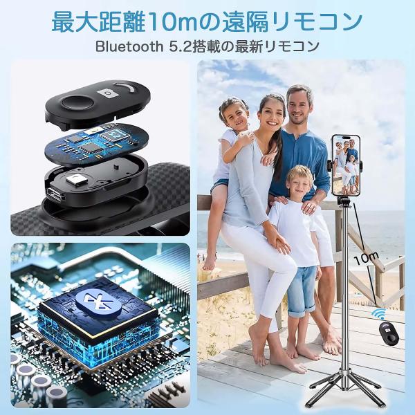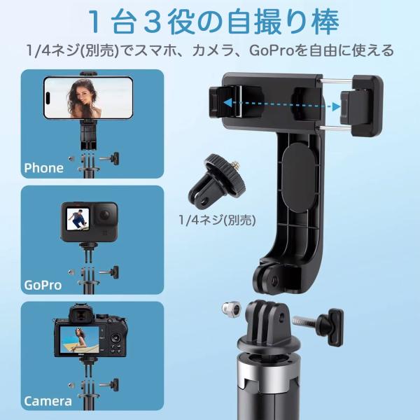 自撮り棒 iPhone スマホ GoPro対応 四脚 セルカ棒 じどり棒 Bluetooth リモコン付き 充電式 自撮り 軽量 四脚スタンド コンパクト 軽量 360度回転可能 三脚
