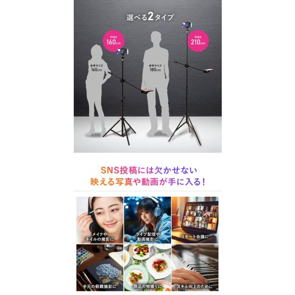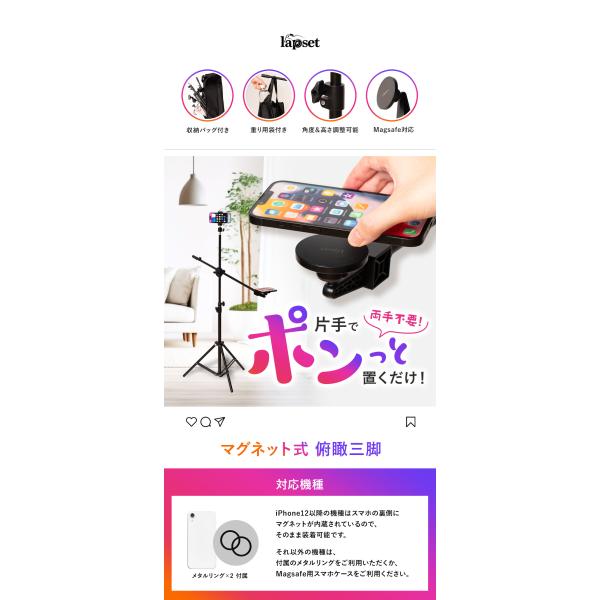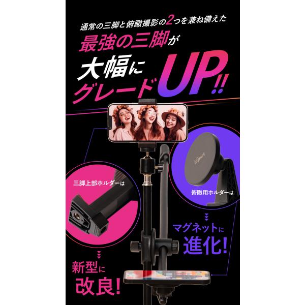 スマホ 三脚 俯瞰撮影 俯瞰三脚 長い マグネット magsafe対応 スマホスタンド マグネットスタンド 収納袋付き 160cm 210cm 送料無料【"翌日"優良配送】