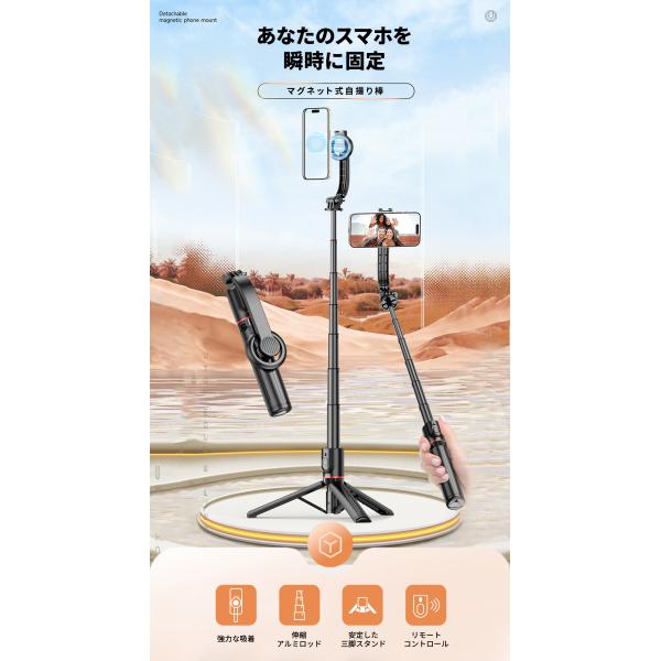 マグネット式 自撮り棒 スマホ スマホスタンド マグセーフ Magsafe マグネット 三脚 折りたたみ式 三脚 軽量 送料無料【"翌日"優良配送】