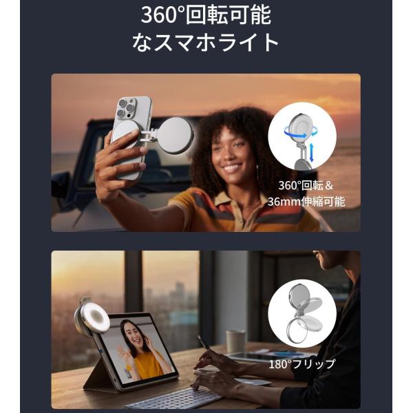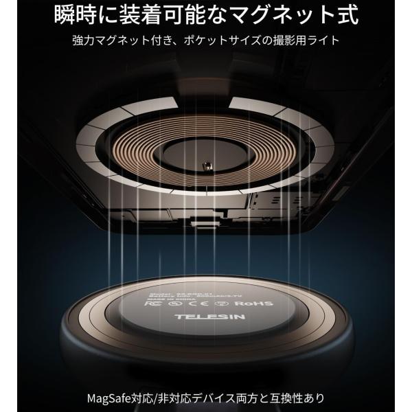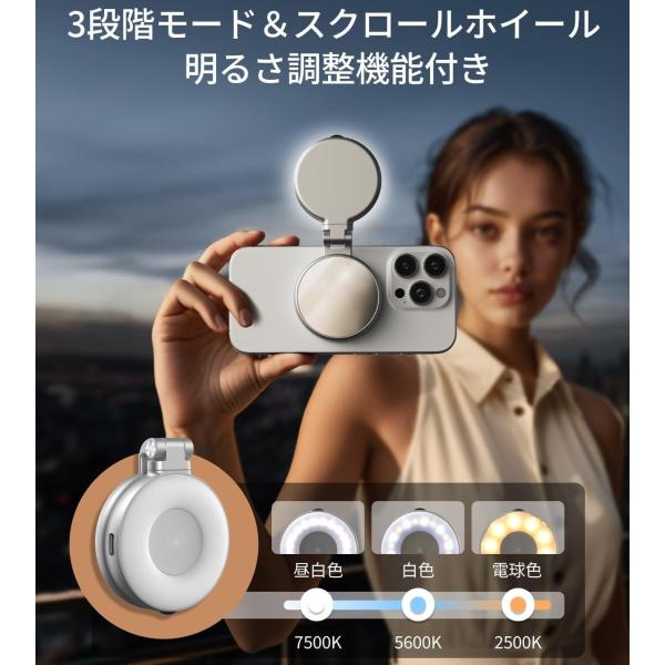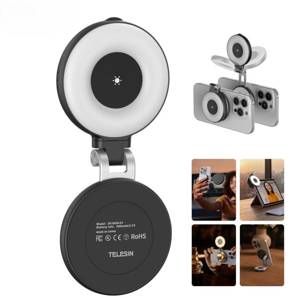 TELESIN C03 リングライト magsafe対応 自撮りライト 撮影用ライト LEDライト マグセーフ 3段階色温度2700K〜7500K 明るさ調節 180°折り畳み 360°回転