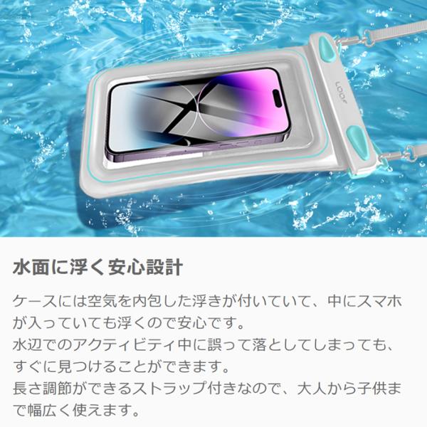 水面に浮く スマホ 防水ケース 携帯 防水カバー 水中撮影 スマホ防水ケース スマートフォンケース ネックストラップ 多機種対応 透明 クリア プール 海 風呂