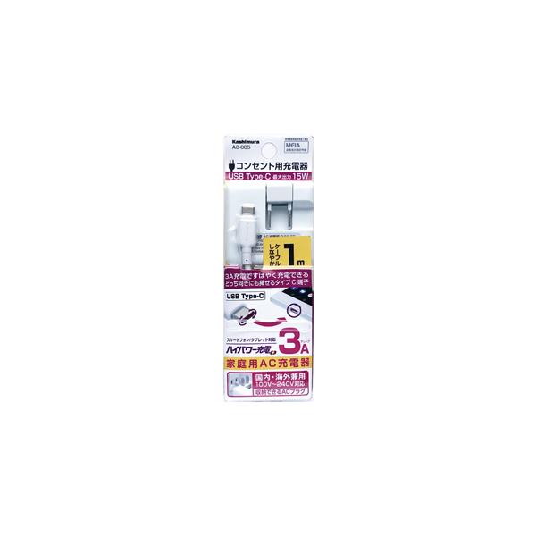 カシムラ AC充電器 AC typeC 3A 1m WH AC-005