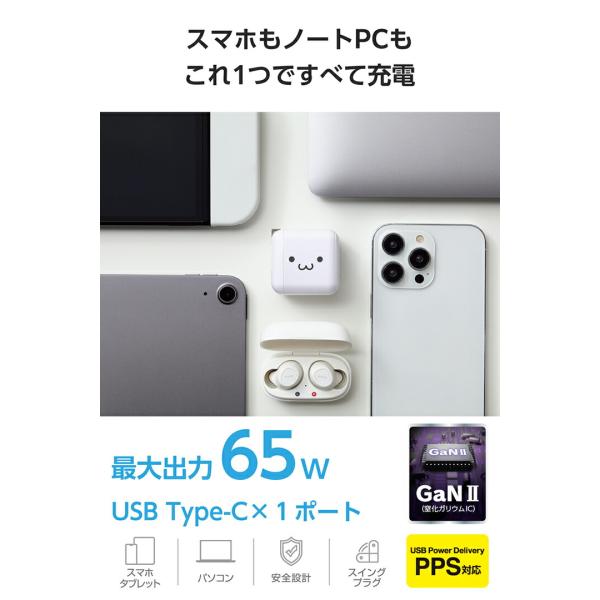 エレコム スマホ・タブレット用 AC充電器 USB Power Delivery 65W USB-C1ポート USB Power Delivery しろちゃん(ホワイト×ブラック) EC-AC8565WF