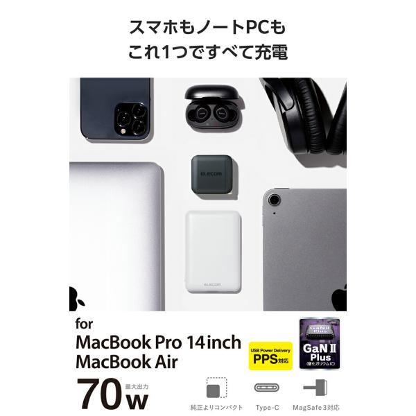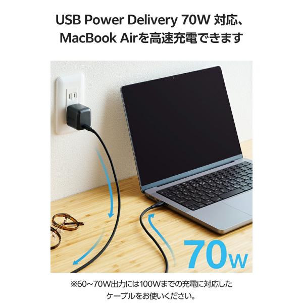 エレコム ノートPC 向け ACアダプター AC充電器 USB Power Delivery 70W パワーデリバリー 対応 70W USB-C×1 ミッドナイト EC-AC8870MN